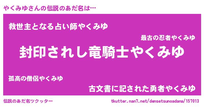 | 胡散臭い通販商品みたいなあだ名 | 『億万長者になれるブレスレット…その名も「やくみゆ」』 |