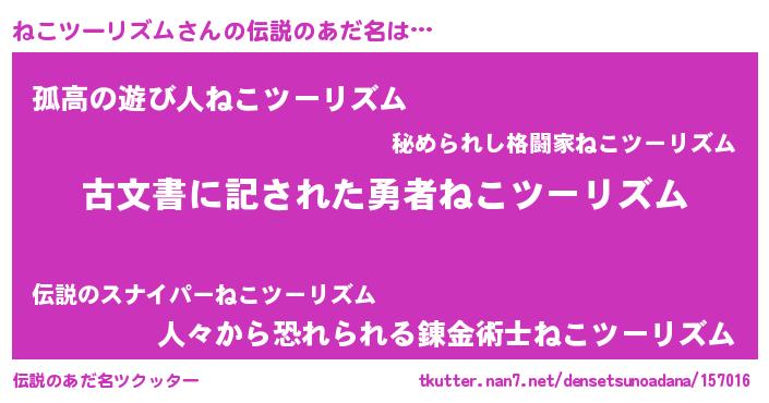 | ヒーロー風カッコイイあだ名 | 『ネオネコツーリズム』『幻影騎士ネコ』 |