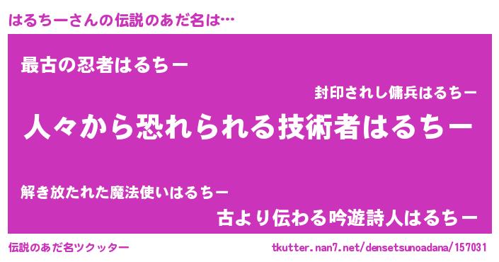 | ヒーロー風カッコイイあだ名 | 『ウルトラ戦士ハルチー』『仮面ハルダー』 |