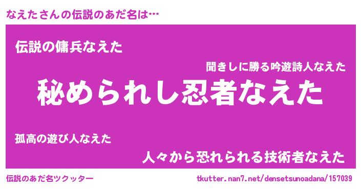 | 意味不明あだ名 | 『自称なえた』『なえたフォーエバー』 |