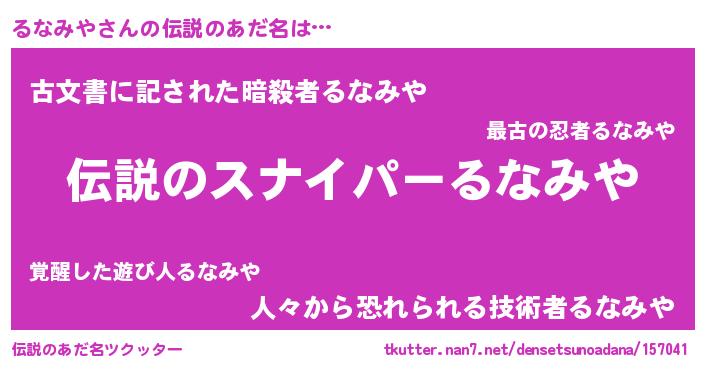| 胡散臭い通販商品みたいなあだ名 | 『必ず成功する霊験あらたかなお札…その名も「るなみや」』 |