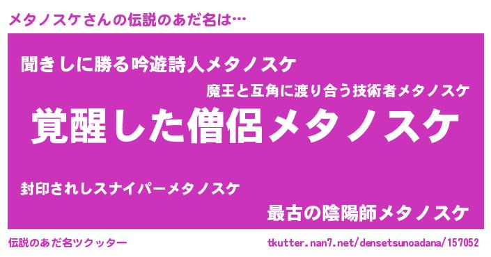 | ヒーロー風カッコイイあだ名 | 『最強戦士メタノスケ』『暗黒騎士メタ』 |