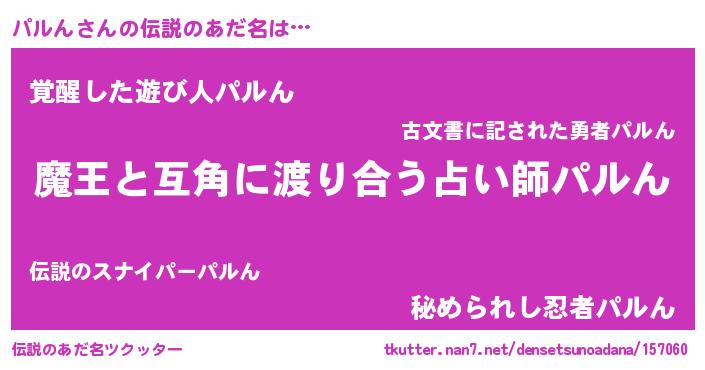 | ヒーロー風カッコイイあだ名 | 『愛の使者パルん』『最強戦士パルン』 |