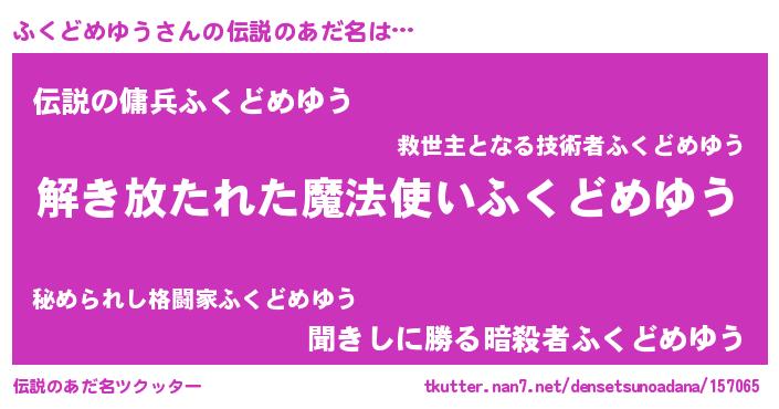 | 意味不明あだ名 | 『とにかく怪しいふくどめゆう』 |
