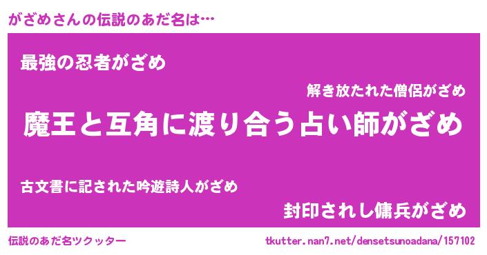 | ヘコむあだ名 | 『なまこ酢』『がざもー』『がざっぺ』 |