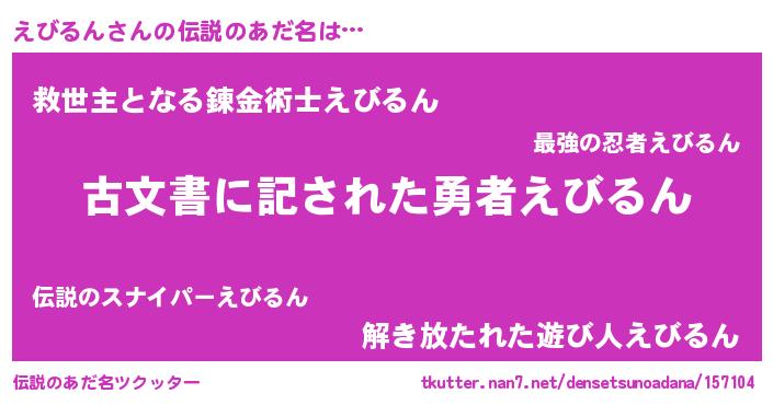 | 意味不明あだ名 | 『住所不定無職えびるん(85歳)』 |