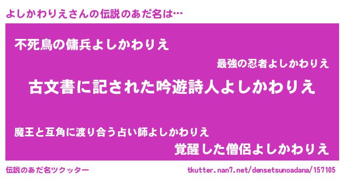| ヒーロー風カッコイイあだ名 | 『ネオヨシカワリエ』『幻影騎士ヨシ』 |