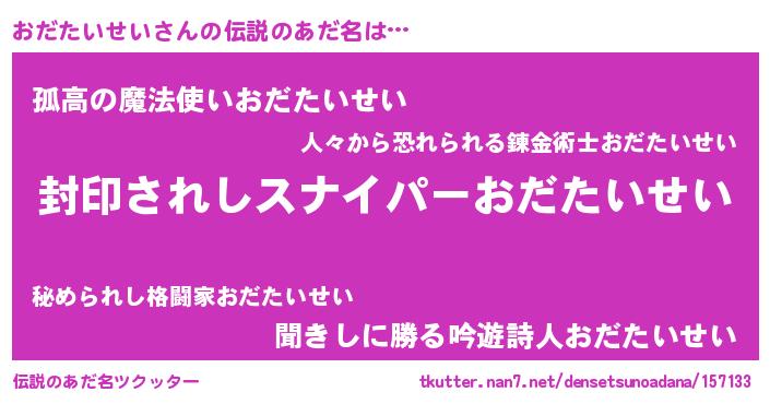 | 胡散臭い通販商品みたいなあだ名 | 『億万長者になれる霊験あらたかなお札…その名も「おだたいせい」』 |