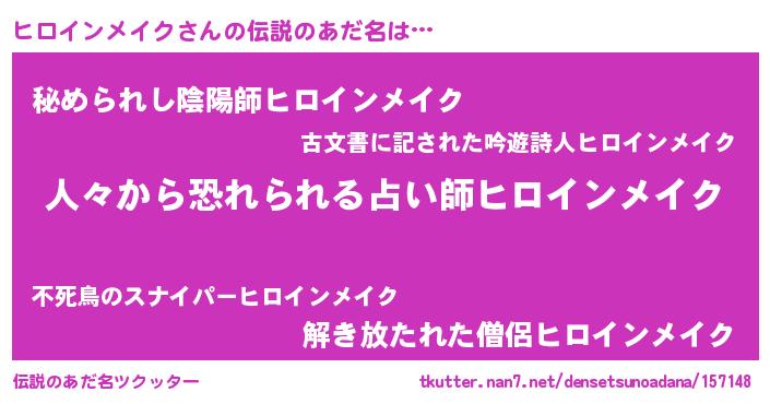 | ヒーロー風カッコイイあだ名 | 『仮面ヒロダー』『銀牙騎士ヒロ』 |