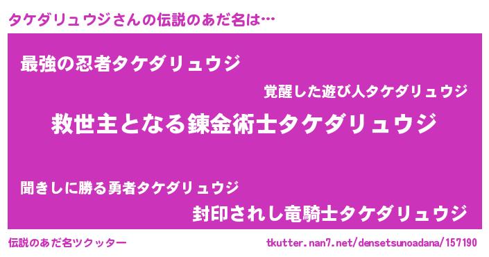 | ヒーロー風カッコイイあだ名 | 『慈愛の使者タケダリュウジ』 |