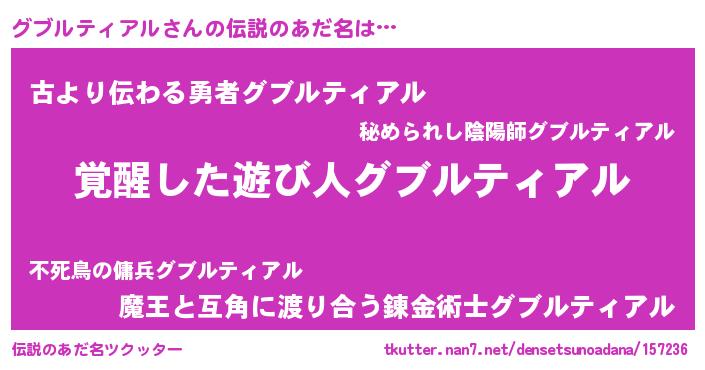 | 男性向けラノベタイトル風あだ名 | 『グブルティアルの嫁は女の子じゃないと思った?』 |