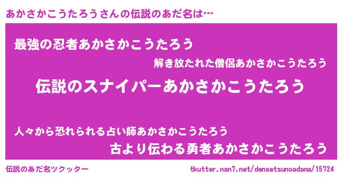 | ヒーロー風カッコイイあだ名 | 『スーパーアカサカコウタロウ』 |