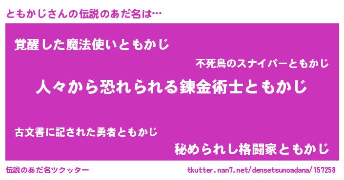 | 意味不明あだ名 | 『眠気覚ましガムともかじ味』 |