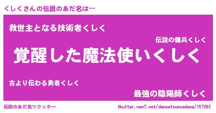 | 女子向けラノベタイトル風あだ名 | 『くしく様がみてる』『死神くしくの再婚』 |