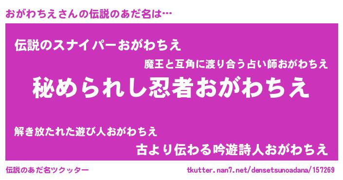 | ヒーロー風カッコイイあだ名 | 『超時空戦士オガワチエ』『仮面オガダー』 |