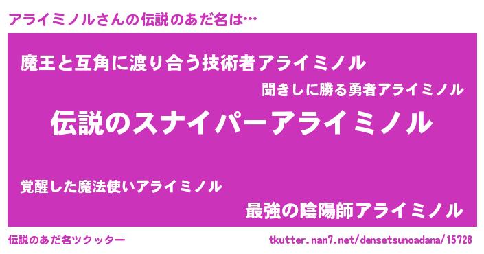 | ヒーロー風カッコイイあだ名 | 『スーパーアライミノル』『仮面アラダー』 |