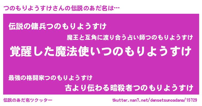 | 女子向けラノベタイトル風あだ名 | 『つのもりようすけ様がみてる』 |