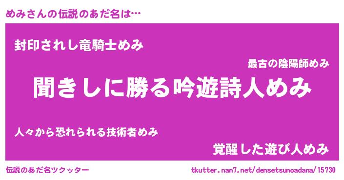 | ファンタジー風あだ名 | 『ゼメミトゥ』『カークメミラー』 |