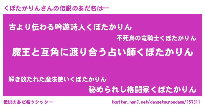 | ヒーロー風カッコイイあだ名 | 『仮面クボダー』『愛の使者くぼたかりん』 |