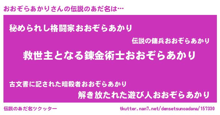 | 意味不明あだ名 | 『自称おおぞらあかり』 |
