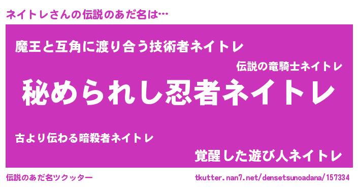 | ヒーロー風カッコイイあだ名 | 『ウルトラ戦士ネイトレ』『暗黒騎士ネイ』 |