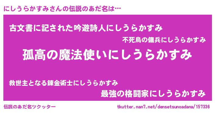 | 意味不明あだ名 | 『住所不定無職にしうらかすみ(7歳)』 |