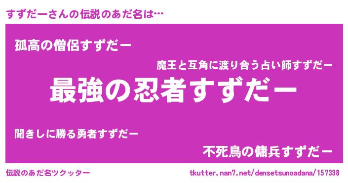 | 意味不明あだ名 | 『自称すずだー』『すずだーフォーエバー』 |