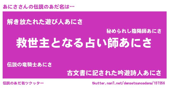 | 意味不明あだ名 | 『眠気覚ましガムあにさ味』『自称あにさ』 |