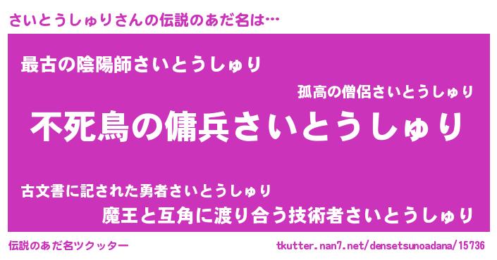 | 女子向けラノベタイトル風あだ名 | 『さいとうしゅり姫と円卓の騎士』 |