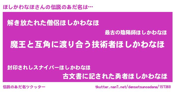 | ヒーロー風カッコイイあだ名 | 『慈愛の使者ほしかわなほ』 |