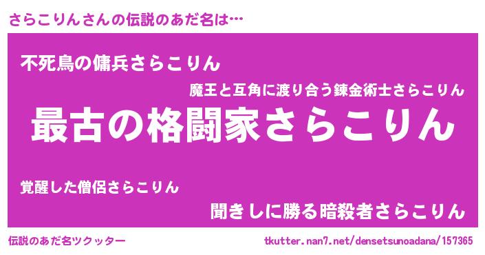 | ファンタジー風あだ名 | 『カークサララー』『サラフェル』 |