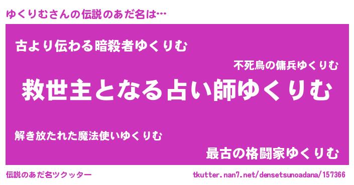 | ヒーロー風カッコイイあだ名 | 『最強戦士ユクリム』『ネオユクリム』 |