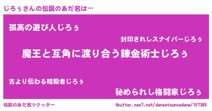 | ヒーロー風カッコイイあだ名 | 『愛の使者じろぅ』『魔戒騎士ジロ』 |