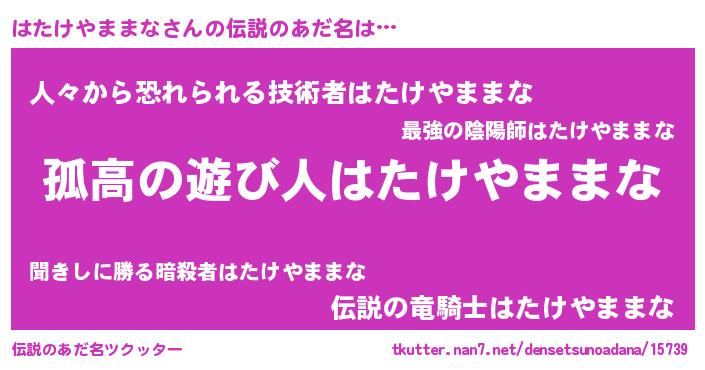 | 男性向けラノベタイトル風あだ名 | 『ダンジョンにはたけやままなを求めるのは間違っているだろうか』 |