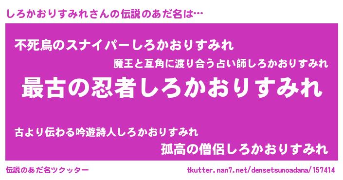 | 意味不明あだ名 | 『しろかおりすみれフォーエバー』 |