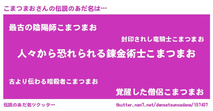 | ヒーロー風カッコイイあだ名 | 『友情の使者こまつまお』『炎刃騎士コマ』 |