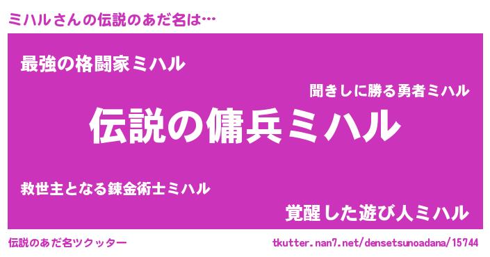 | ファンタジー風あだ名 | 『ミハフェル』『エターナルミハルー』 |