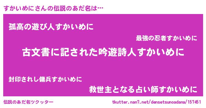 | ヘコむあだ名 | 『すかいめに(笑)』『すかっちょ』 |