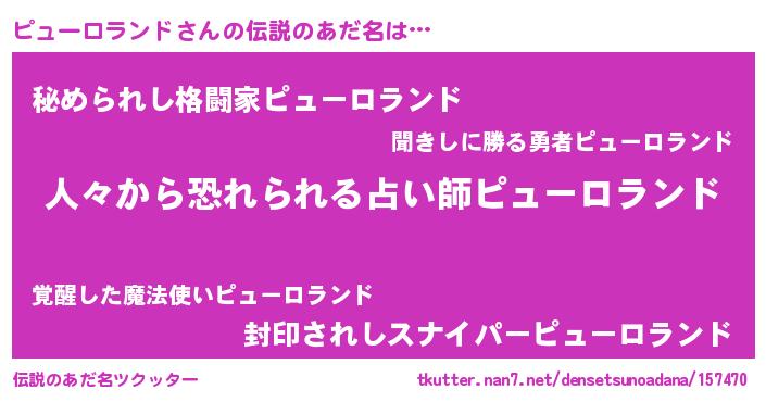 | 男性向けラノベタイトル風あだ名 | 『ピューロランドスレイヤー』 |