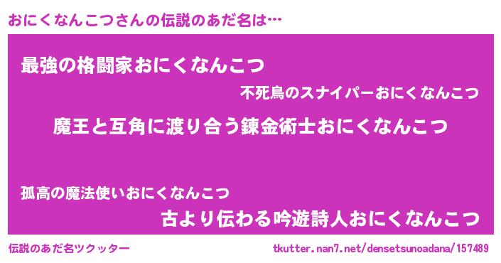 男性向けラノベタイトル風あだ名 | 『おまえをオタクにしてやるから、俺をおにくなんこつにしてくれ! 』 |