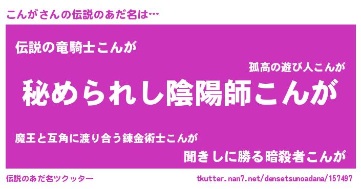 | 男性向けラノベタイトル風あだ名 | 『やはりこんがの青春ラブコメはまちがっている 』 |