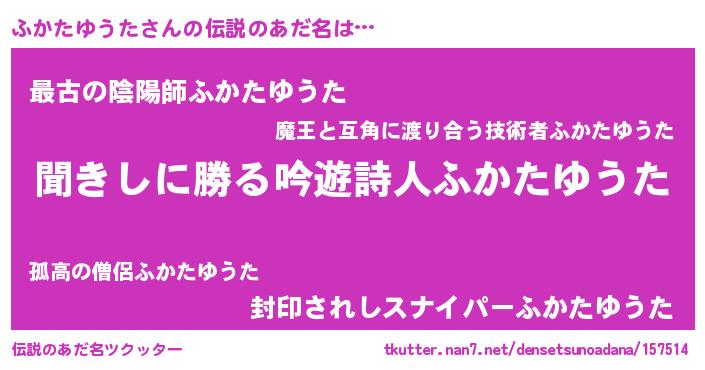 | 意味不明あだ名 | 『住所不定無職ふかたゆうた(8歳)』 |
