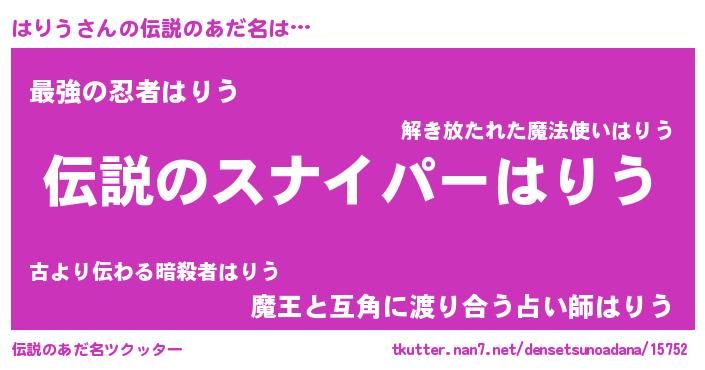 | ファンタジー風あだ名 | 『ハリフェル』『エターナルハリウー』 |
