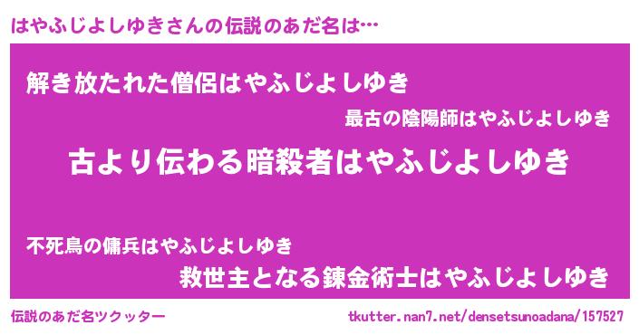 | 意味不明あだ名 | 『住所不定無職はやふじよしゆき(56歳)』 |
