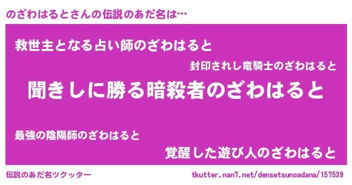 | 男性向けラノベタイトル風あだ名 | 『ノザワハルトスレイヤー』 |