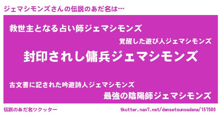 | 男性向けラノベタイトル風あだ名 | 『ジェマシモンズアートオンライン』 |