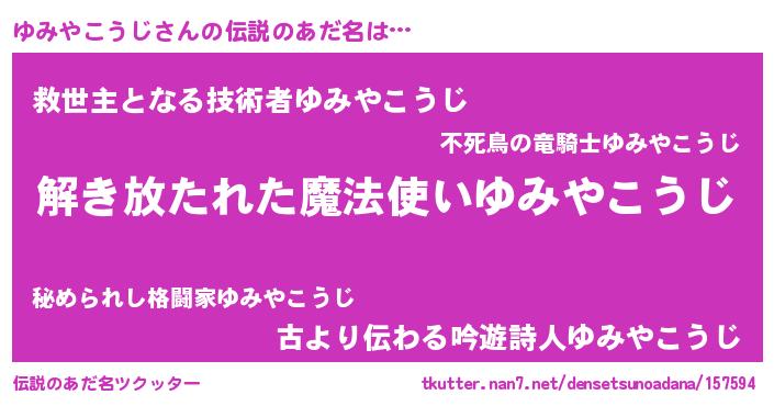 | 肩書あだ名 | 『ゆみやこうじ大佐』『ゆみやこうじ団長』 |