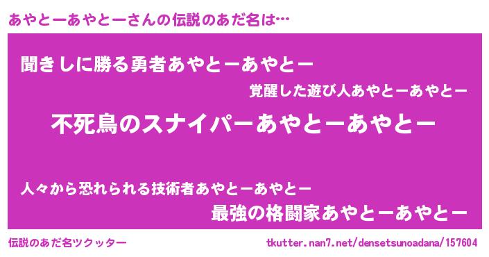 | 男性向けラノベタイトル風あだ名 | 『アヤトーアヤトーアートオンライン』 |