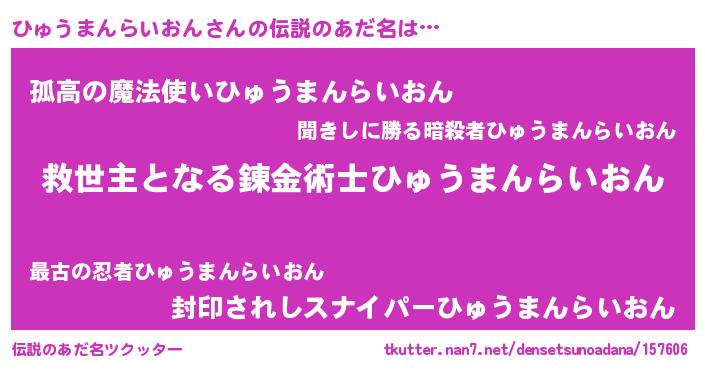 | ヒーロー風カッコイイあだ名 | 『慈愛の使者ひゅうまんらいおん』 |