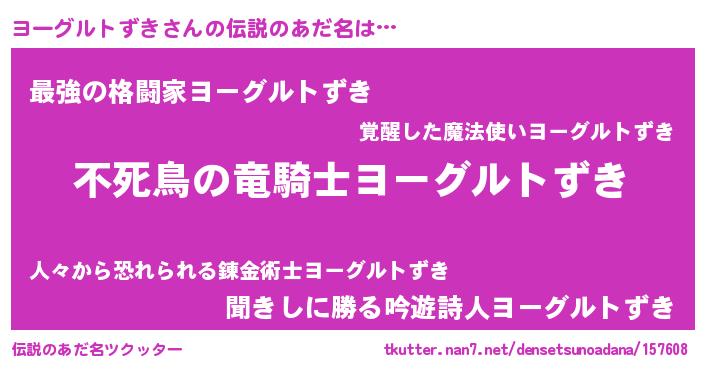 | 男性向けラノベタイトル風あだ名 | 『ヨーグルトずきの憂鬱』 |